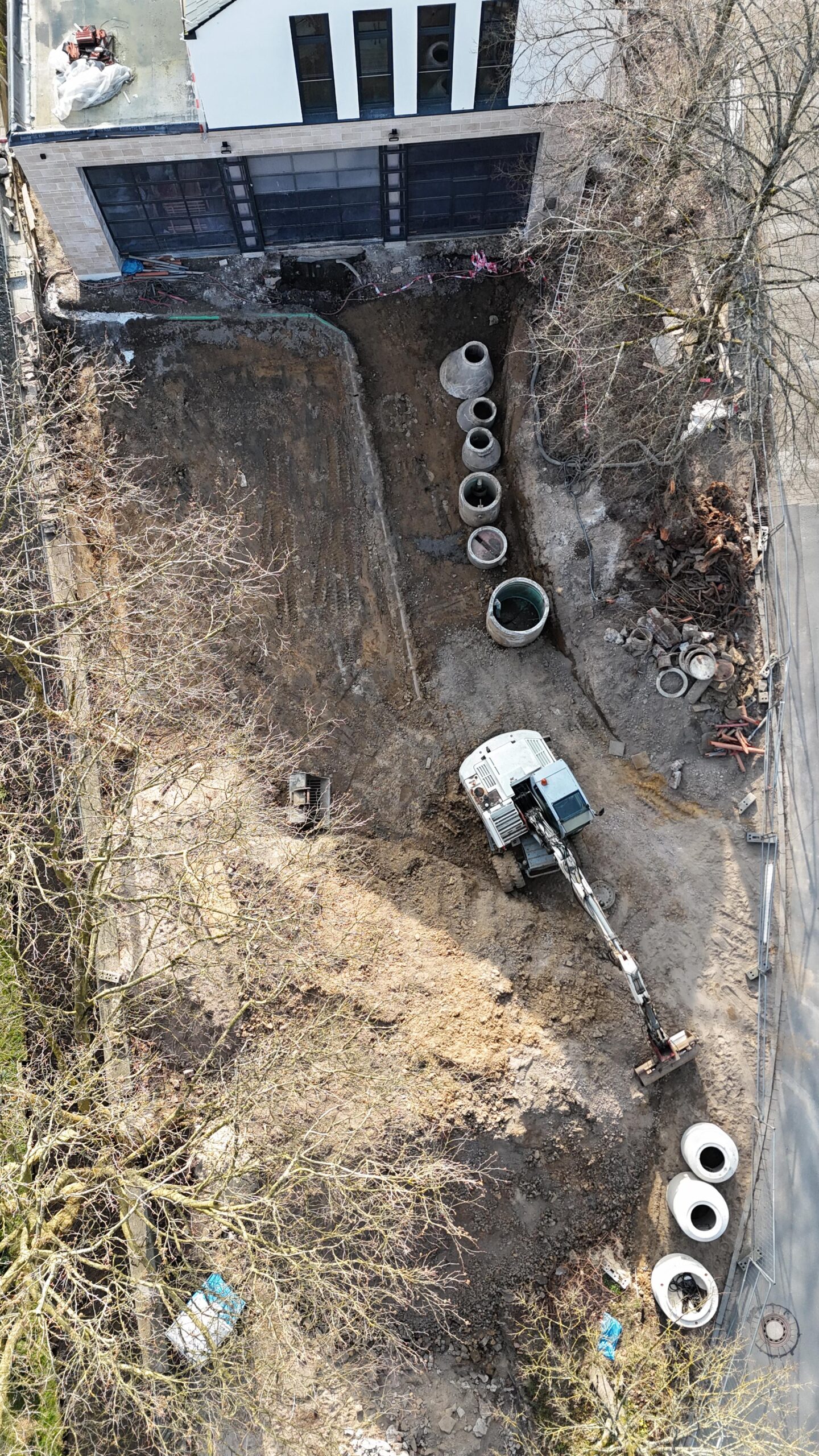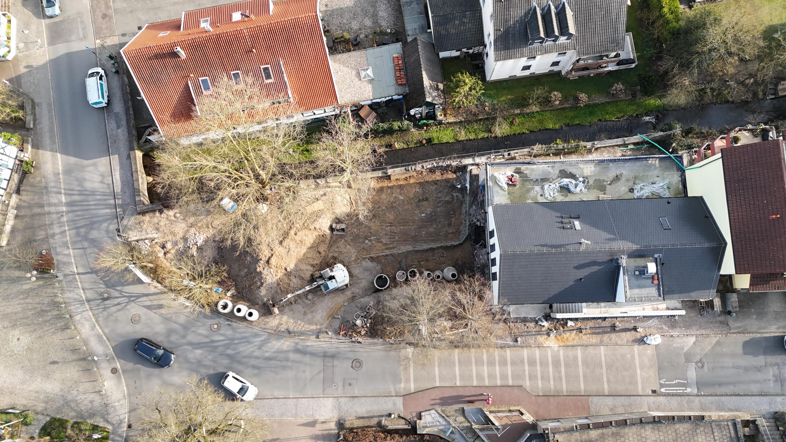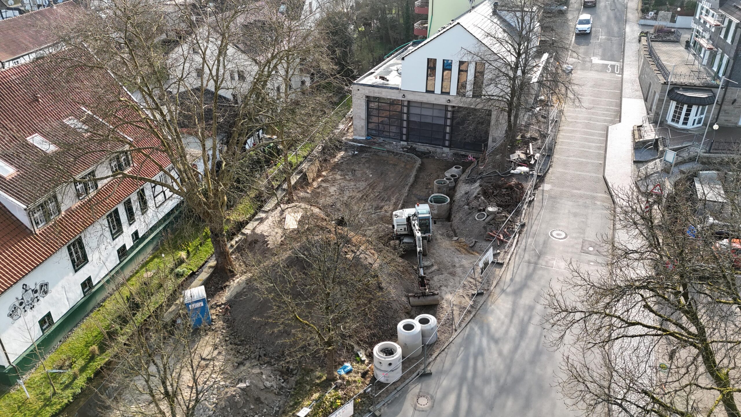 Vor den Fahrzeugtoren werden noch Erdarbeiten durchgeführt. Die Fläche soll zunächst eben gestaltet werden, damit Feuerwehrfahrzeuge leichter Löschwasser aufnehmen können. Danach steigt die Zufahrt leicht an. Befürchtungen von Anwohnern, dass Fahrzeuge dort aufsetzen könnten, sieht die Stadt jedoch nicht bestätigt.